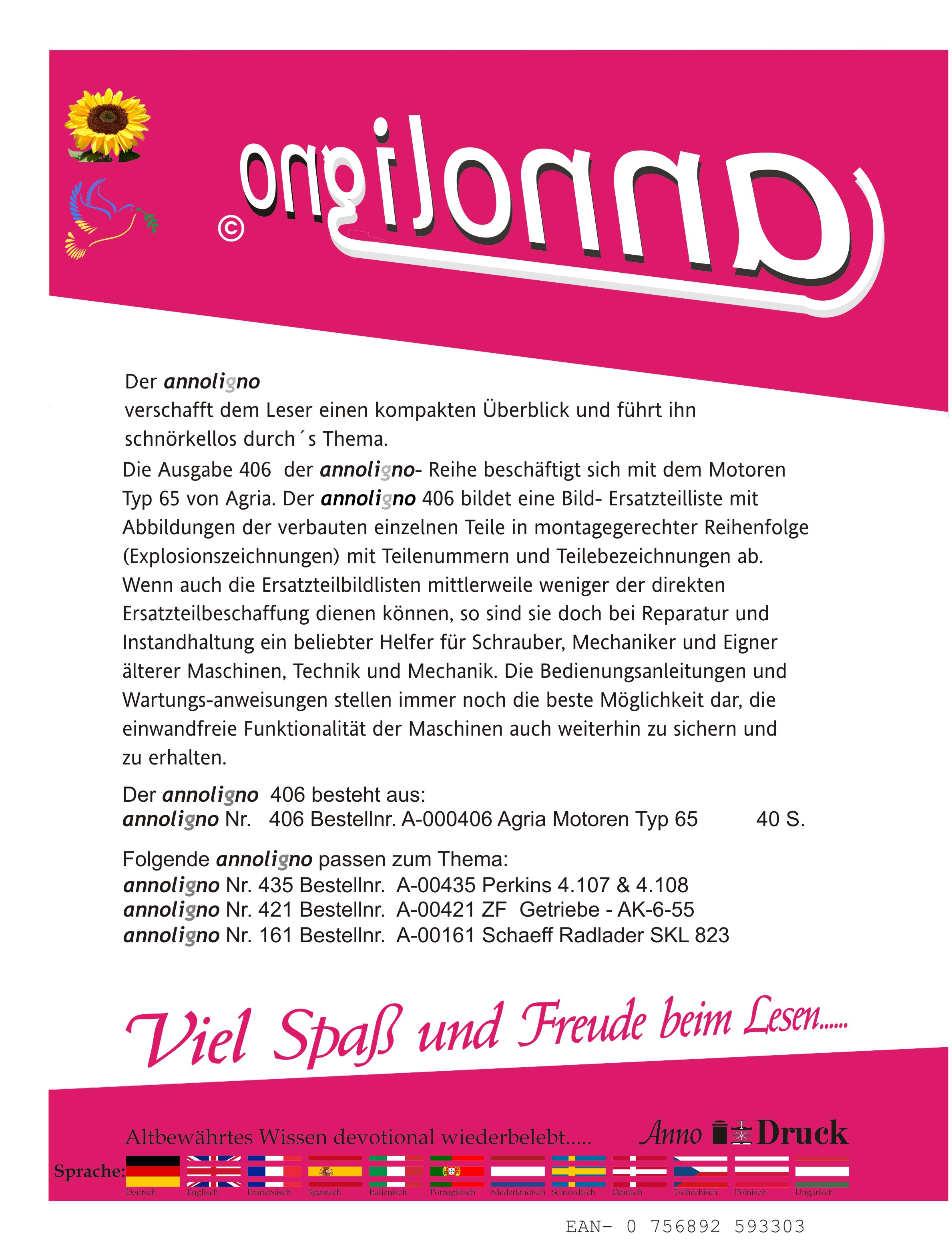 Agria Motoren Typen 65. Der annoligno 406 bildet eine Bild-