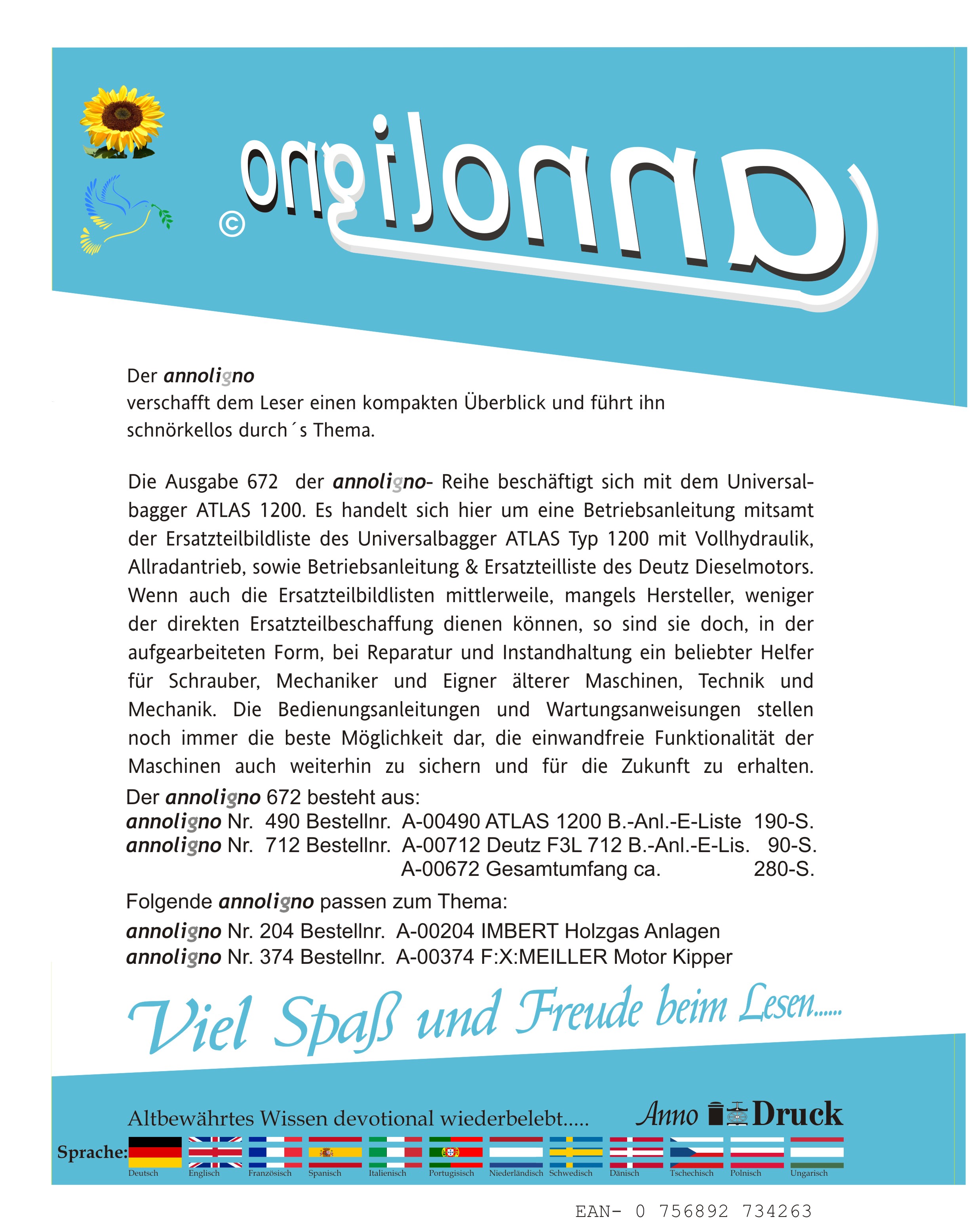 ATLAS Allrad Bagger AB 1200 & Deutz Diesel Motor F3L 712 Bedienungsanleitung & Wartungsanweisung & Bild Ersatzteilliste - annoligno 672