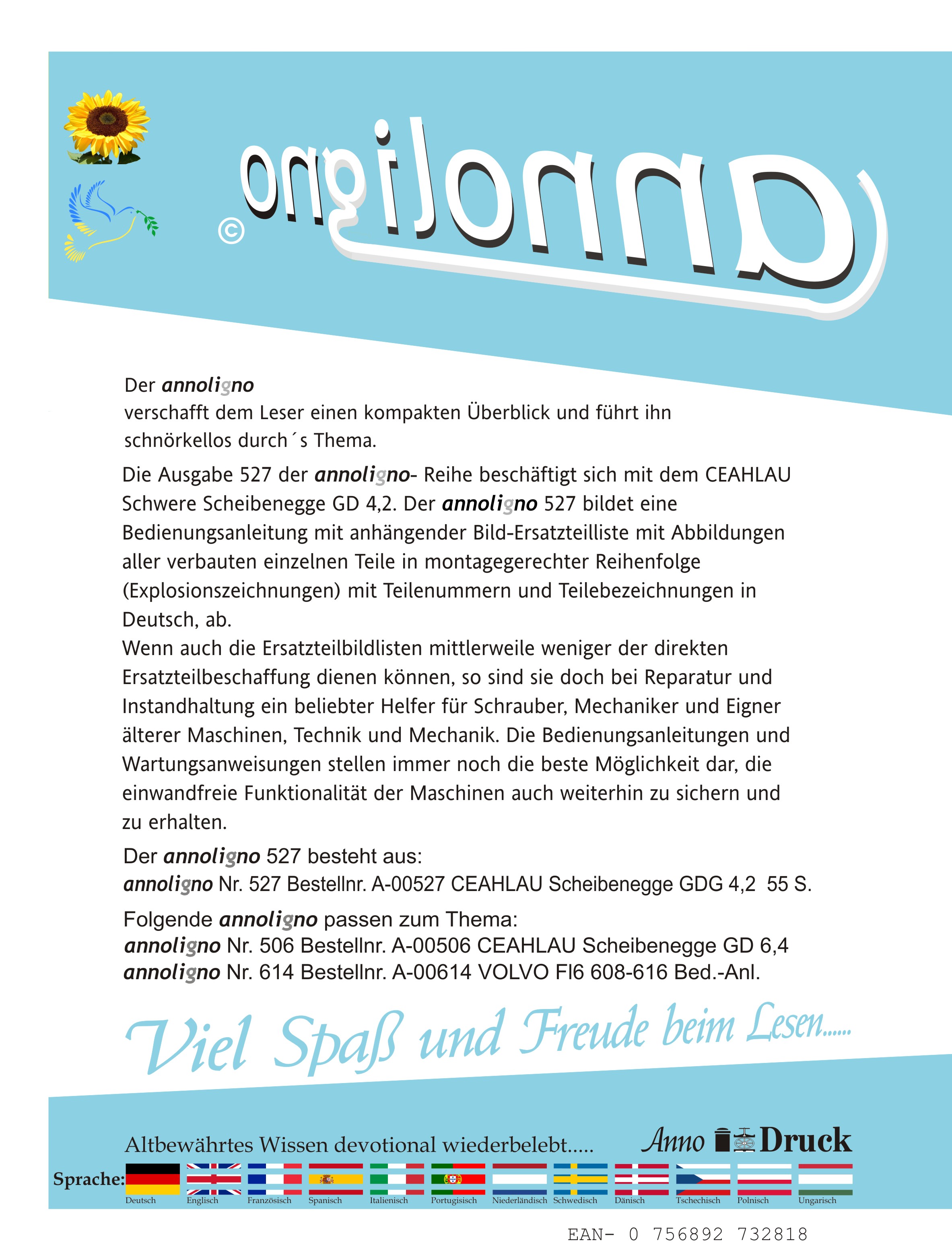 CEAHLAU Schwere Scheibenegge Typ GDG 4,2 Bild- Bedienungsanleitung & Wartungsanleitung & Bild- Ersatzteilliste & Explosionszeichnungen - annoligno 527