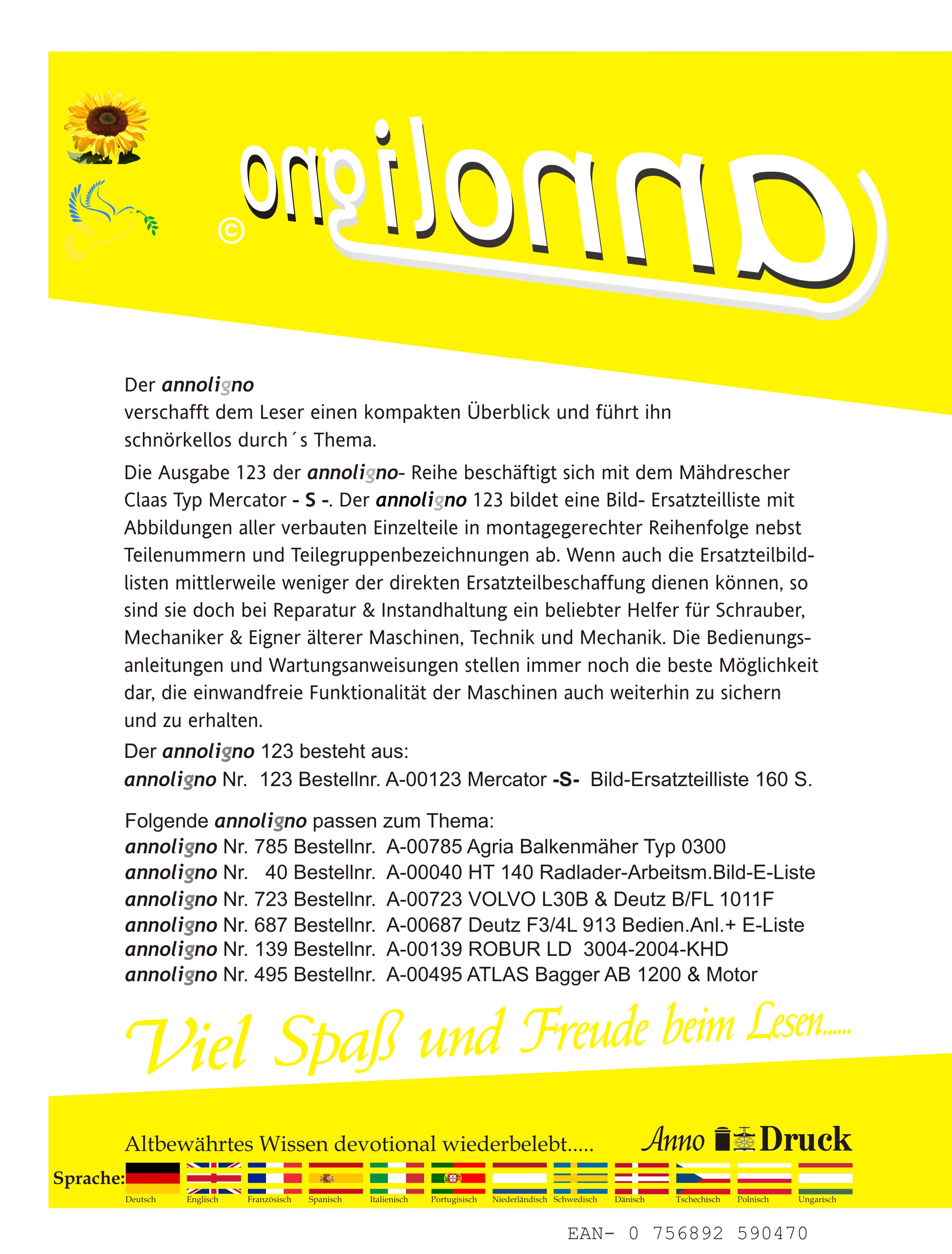 Claas Mähdrescher Mercator Typ - S - Bild- Ersatzteilliste mit Explosionszeichnungen - annoligno 123