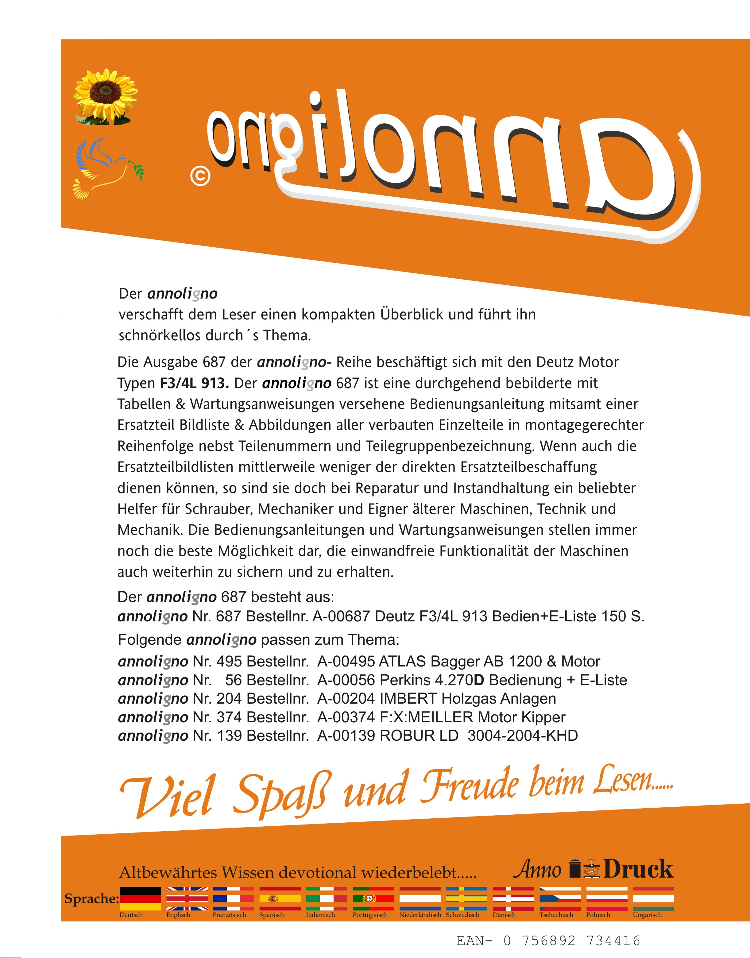 Deutz Diesel Motor Typ F3/4L 913 Bild- Bedienungsanleitung & Bild-Ersatzteilliste & Explosionszeichnungen - annoligno 687