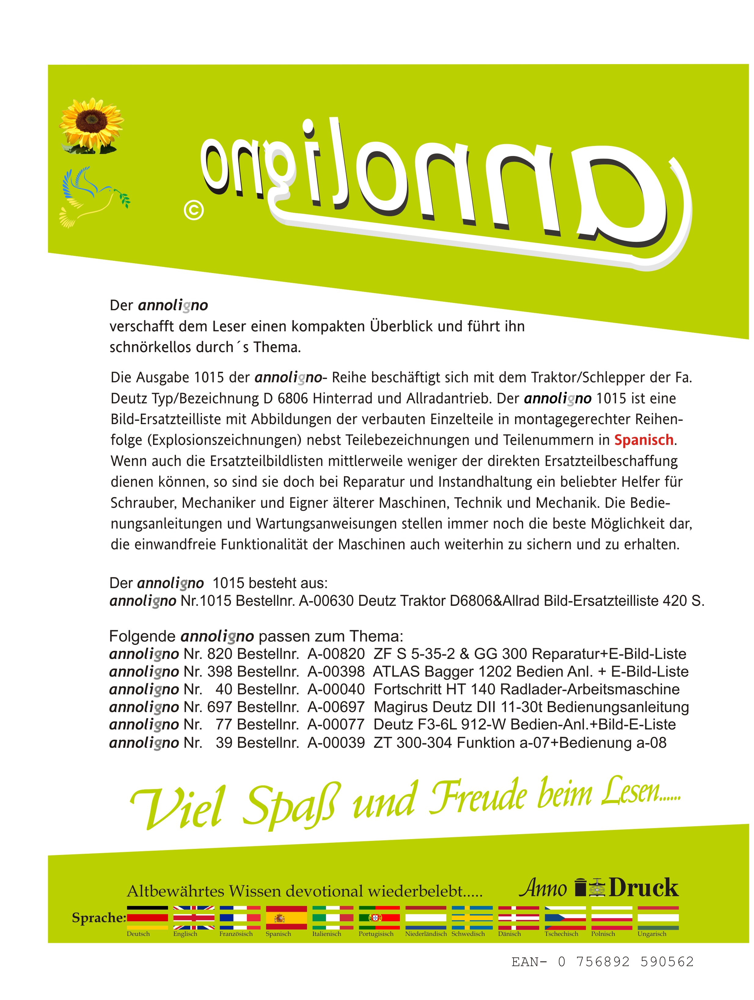 Deutz Schlepper/Traktor Zugmaschine Typen 6806 & 6806 A Allrad Bild- Ersatzteilliste & Explosionszeichnungen - annoligno 1015