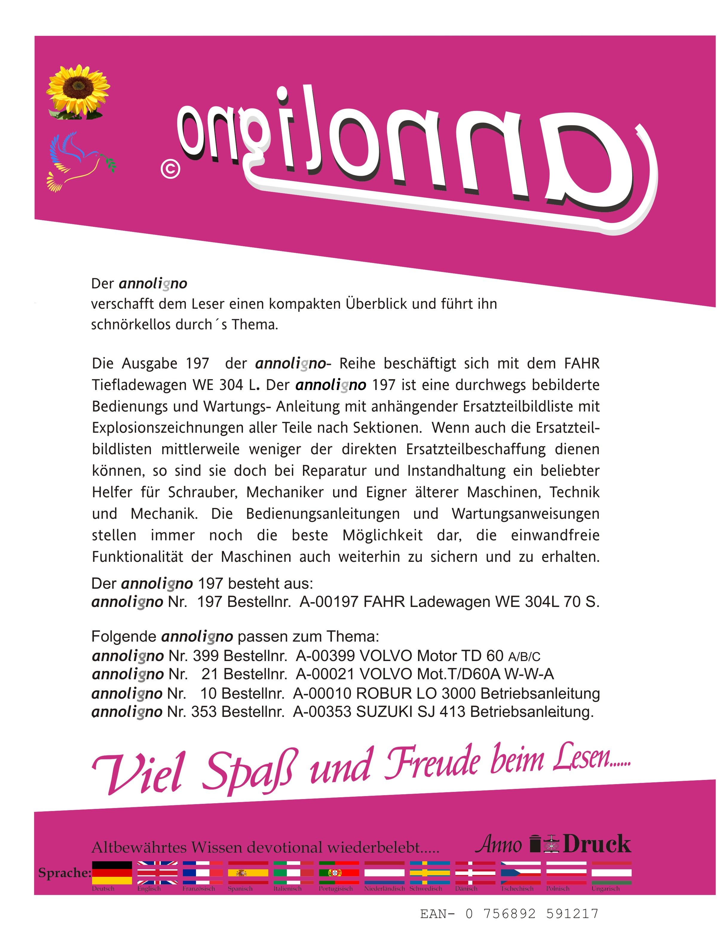 Fahr Ladewagen Typ WE 304 L Bild- Bedienungsanleitung & Bild- Ersatzteilliste & Explosionszeichnungen - annoligno 197 -