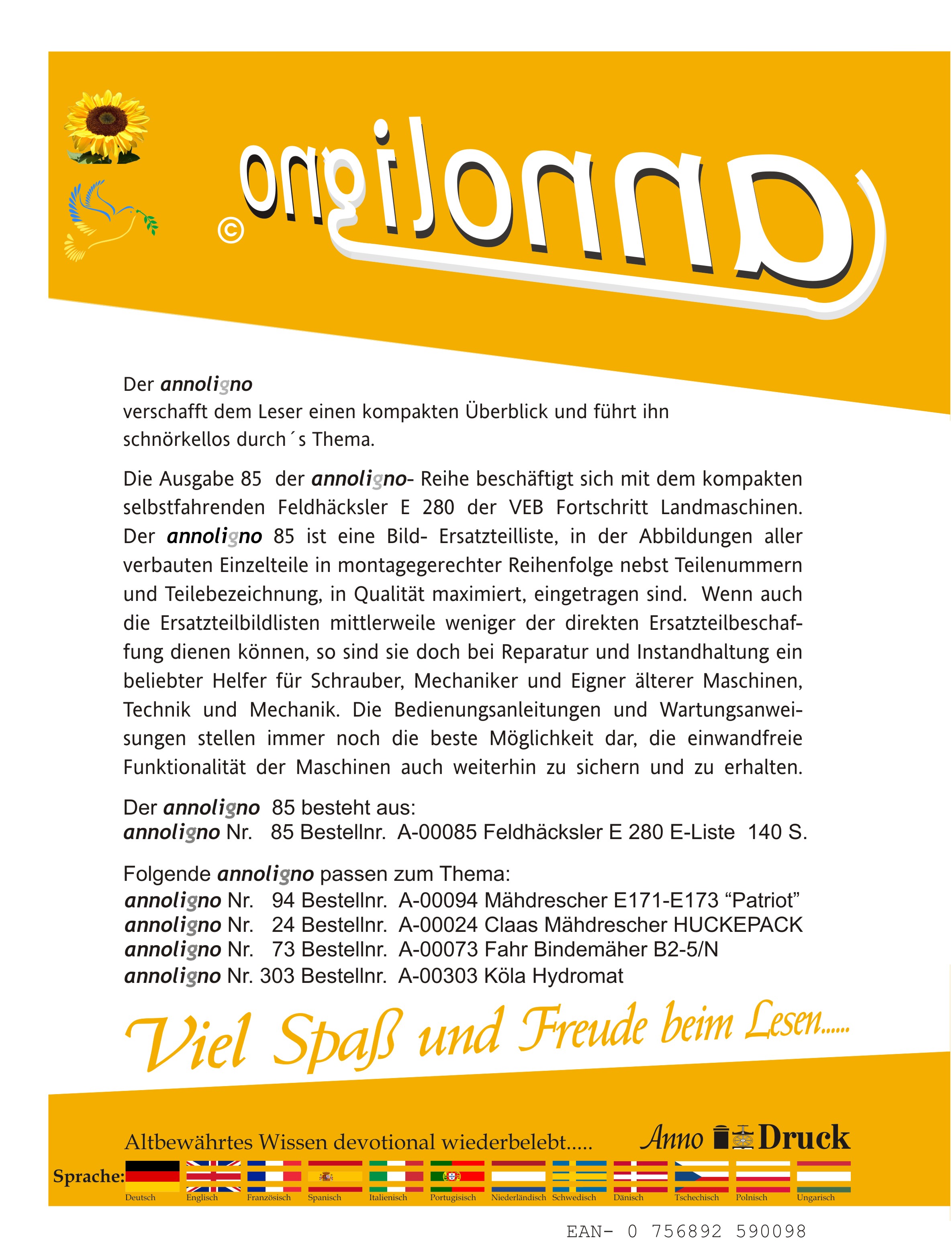 Der annoligno 85 ist eine Bild- Ersatzteilliste, in der Abbildungen aller
