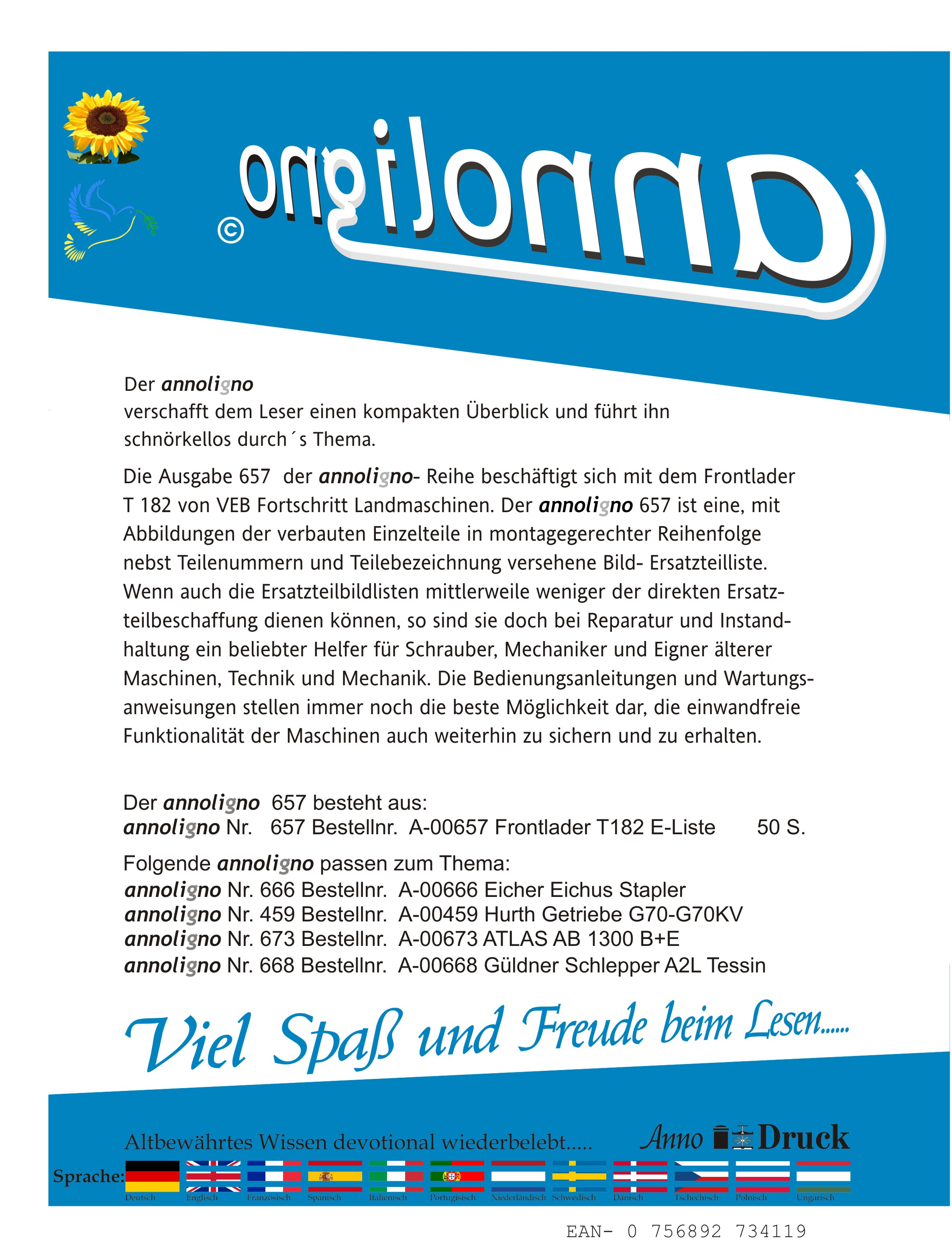 Fortschritt Landmaschinen Traktor Frontlader Typ T 182 Bild- Ersatzteilliste & Explosionszeichnungen - annoligno 657