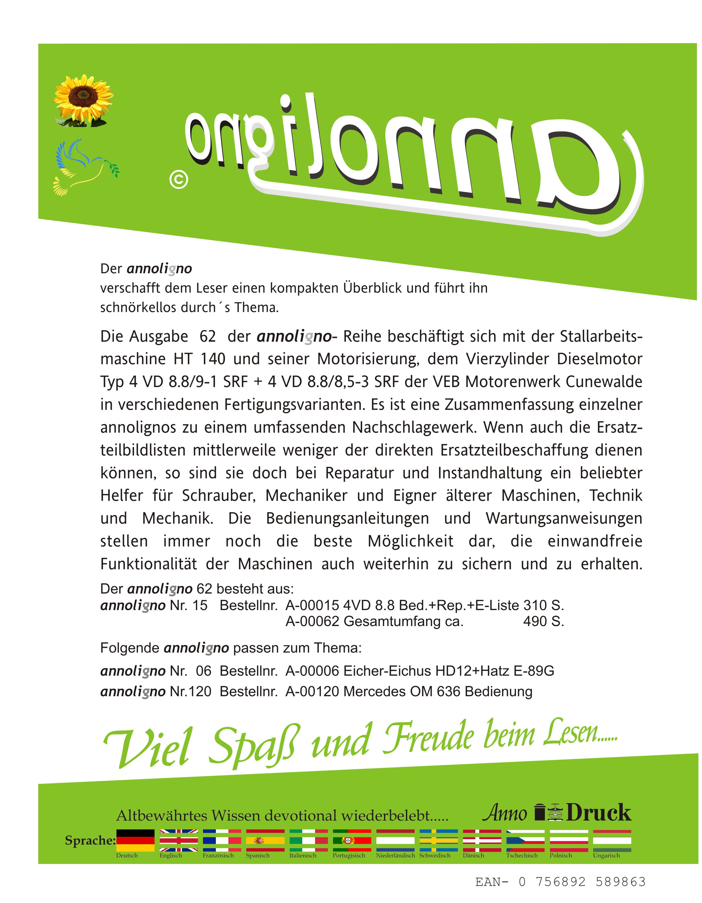 IFA Fortschritt Hoflader HT 140 Bild- Ersatzteilliste & Motor 4VD 8.8 E-Liste & Bedienungsanleitung & Reparaturanleitung - annoligno 62