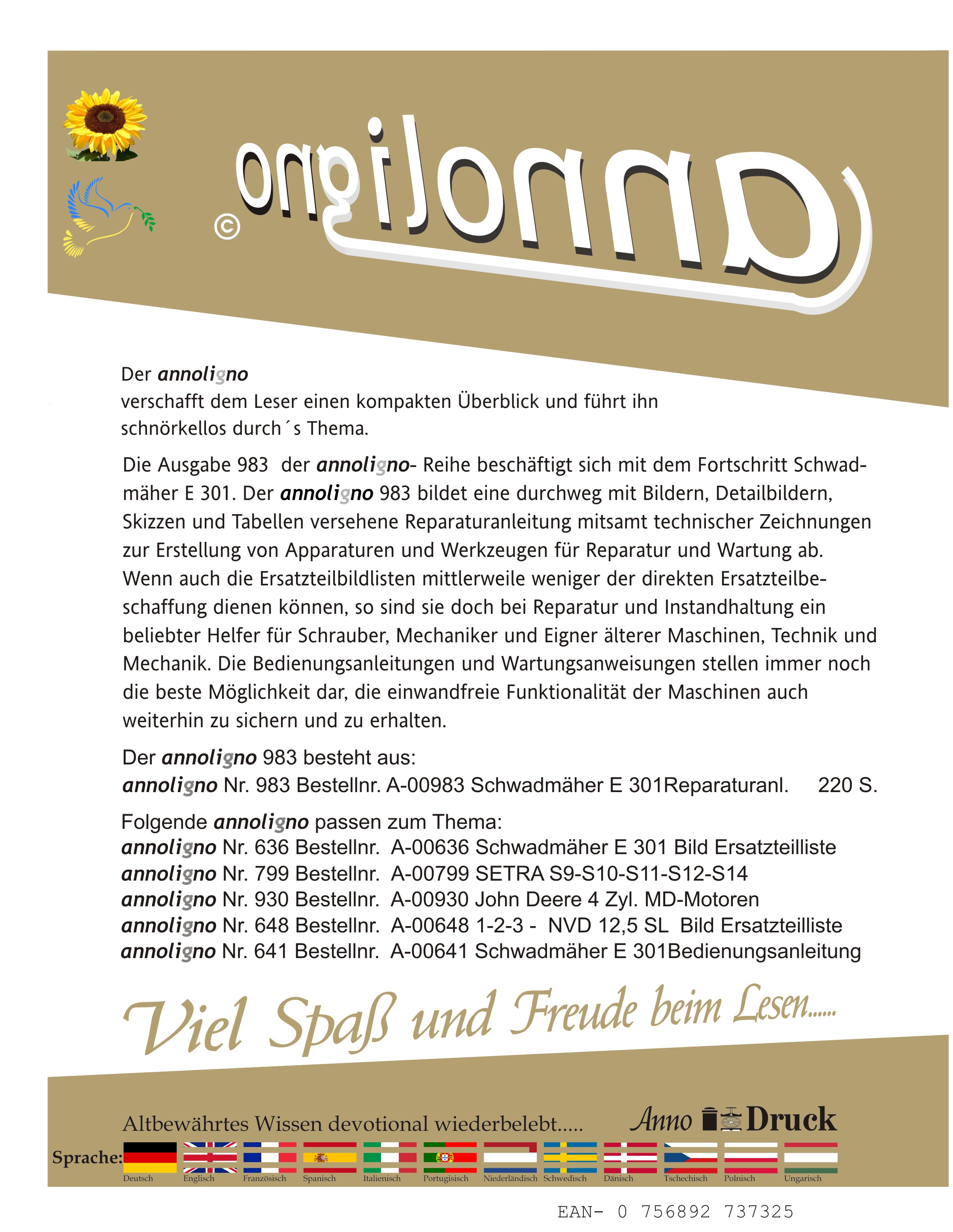 Fortschritt Landmaschinen Selbstfahrer Schwadmäher Typ E 301 Bild- Reparaturanleitung & Werkzeugbau - annoligno 983