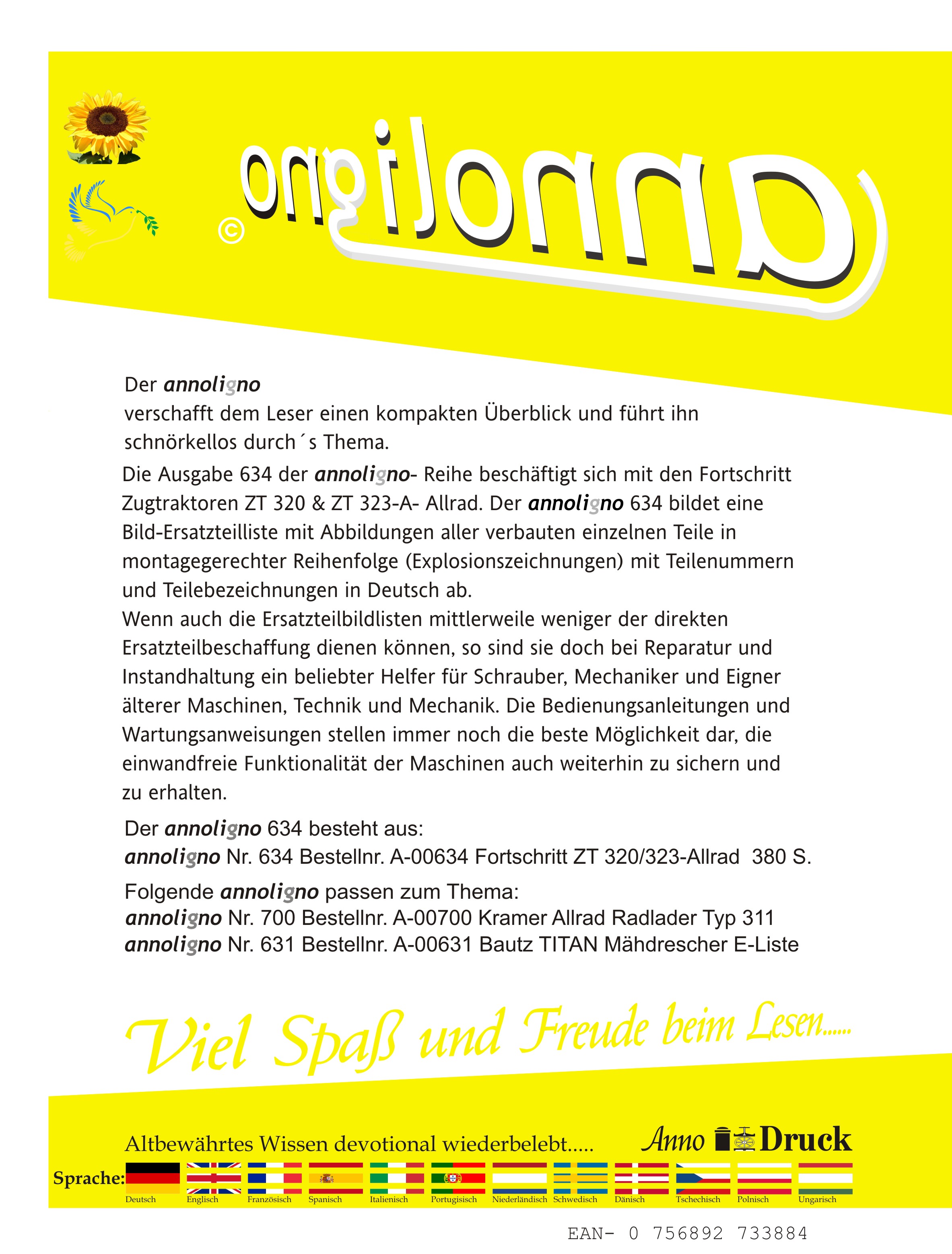 Fortschritt Landmaschinen Traktor/Schlepper Zugmaschine Typ ZT 320-A & 323-A Bild- Ersatzteilliste & Explosionszeichnungen - annoligno 634
