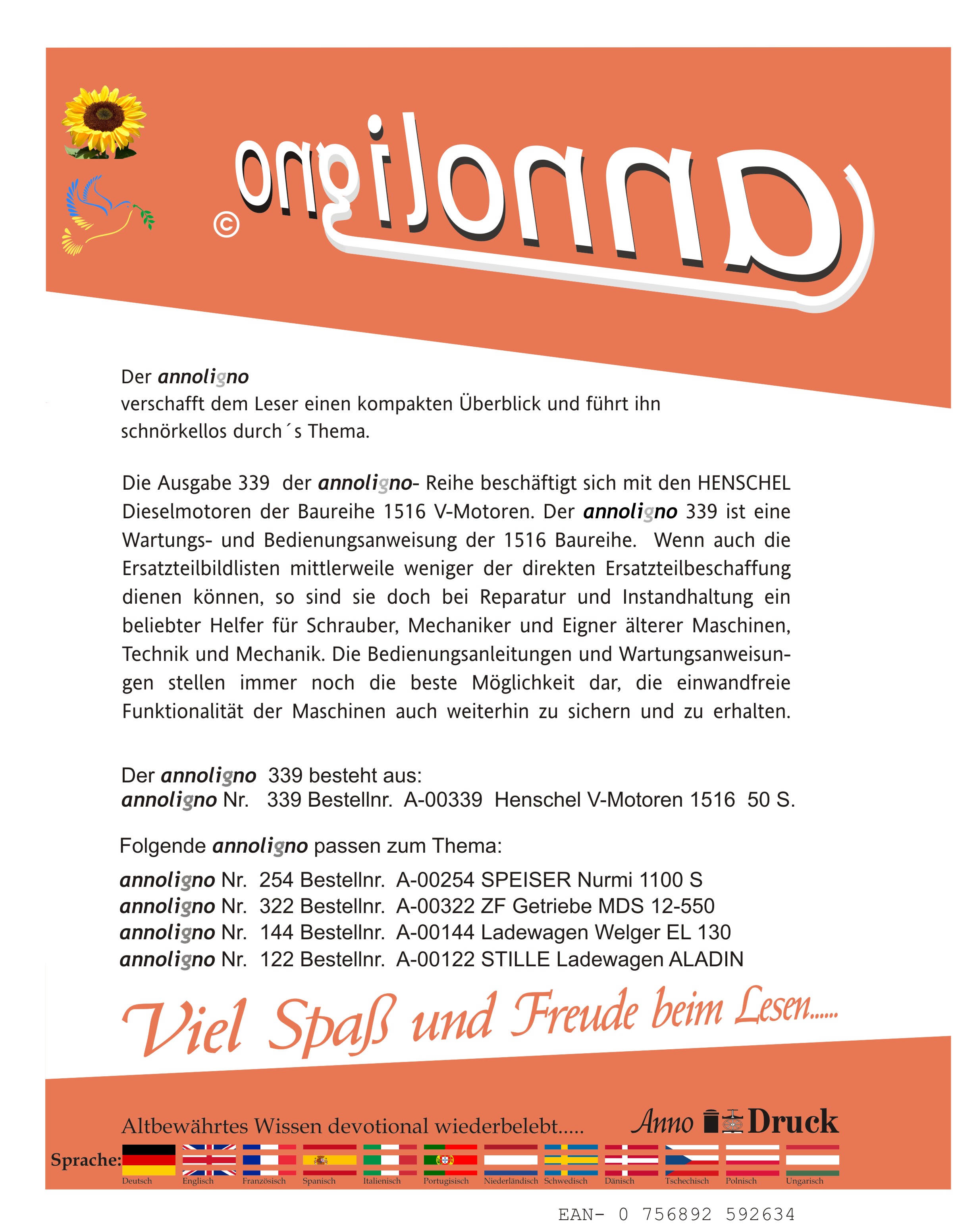 Henschel AG Motoren Baureihe 1516 V-Motoren Bild- Bedienungsanleitung & Wartungsanleitung - annoligno 339 -