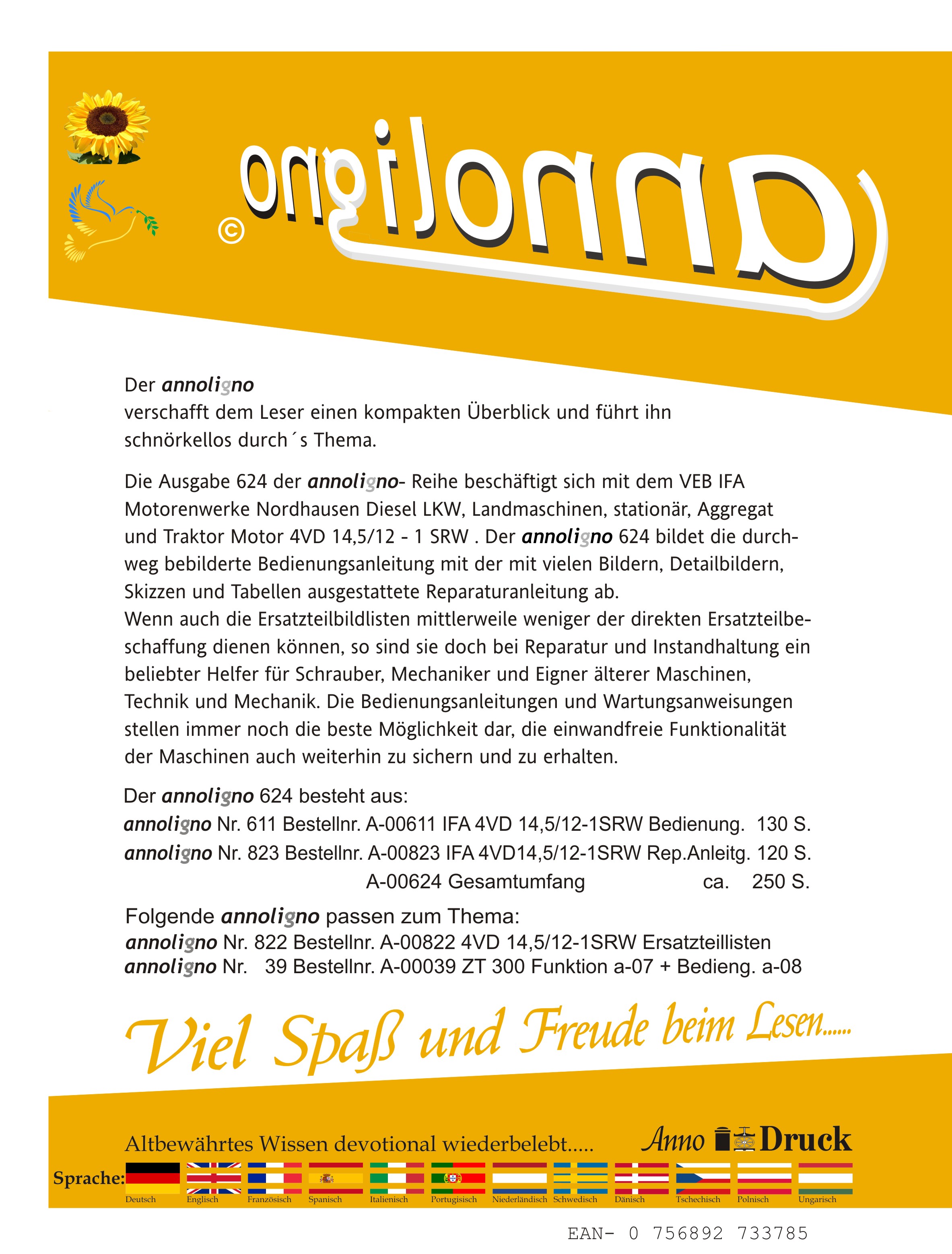 Motor Typ 4VD 14,5/12-1 SRW 1977. Der annoligno 624 bildet die