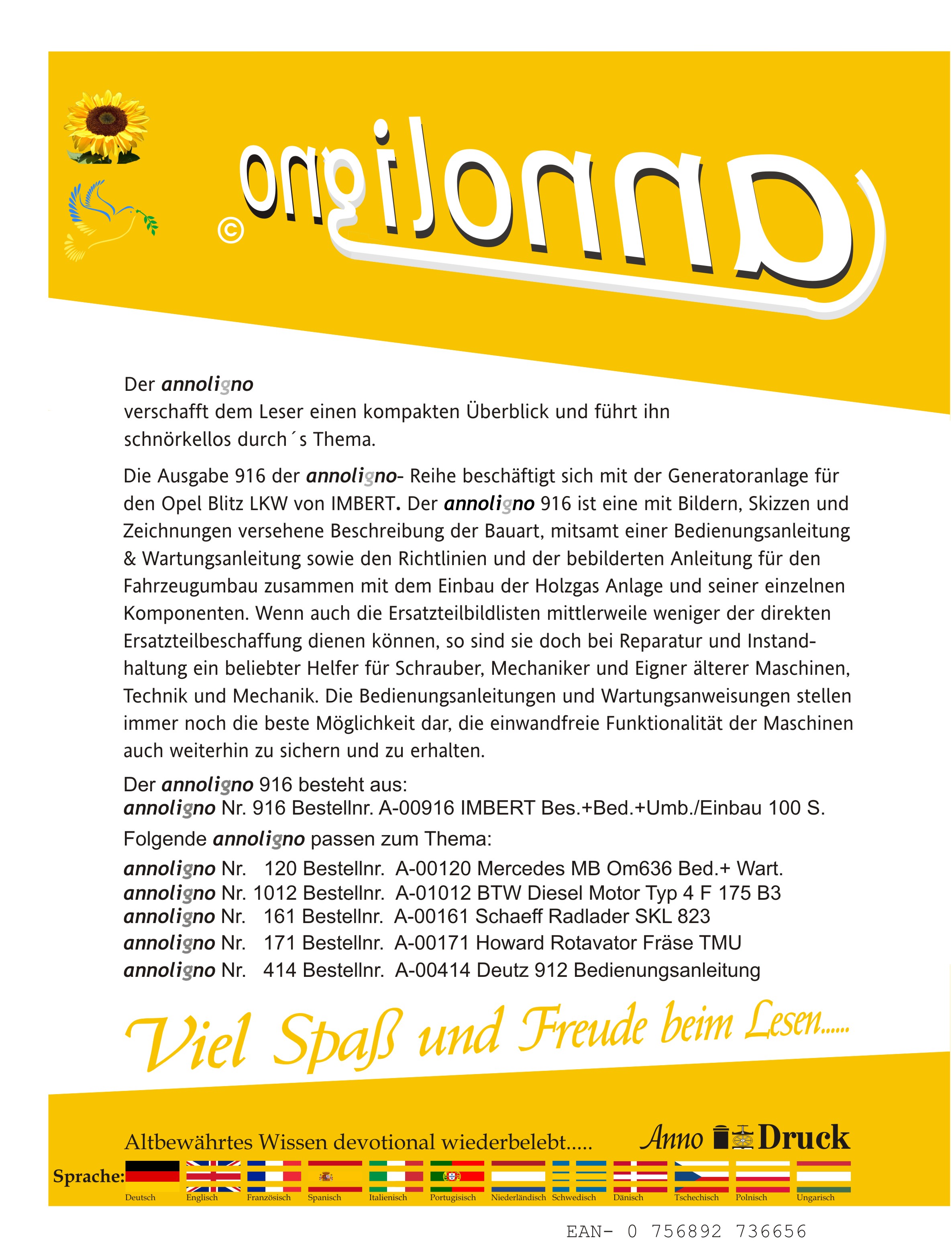 IMBERT Generator Anlage im Opel Blitz LKW Bauart Beschreibung Bedienungsanleitung Wartungsanleitung Sicherheit - annoligno 916