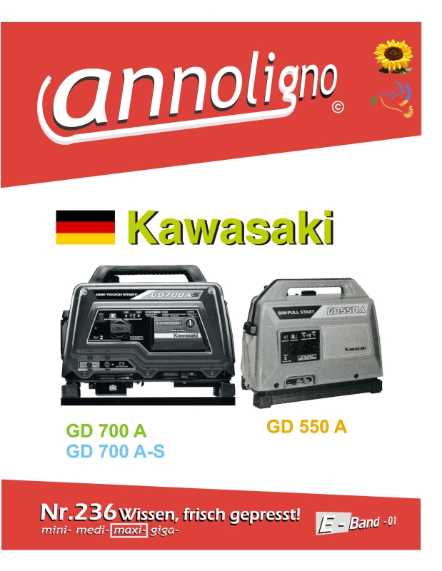 Artikelnummer: a-00236 Kawasaki portabel Generatoren GD550A-GD700A+GD700A-S Bedienungsanleitung + Wartungsanleitung