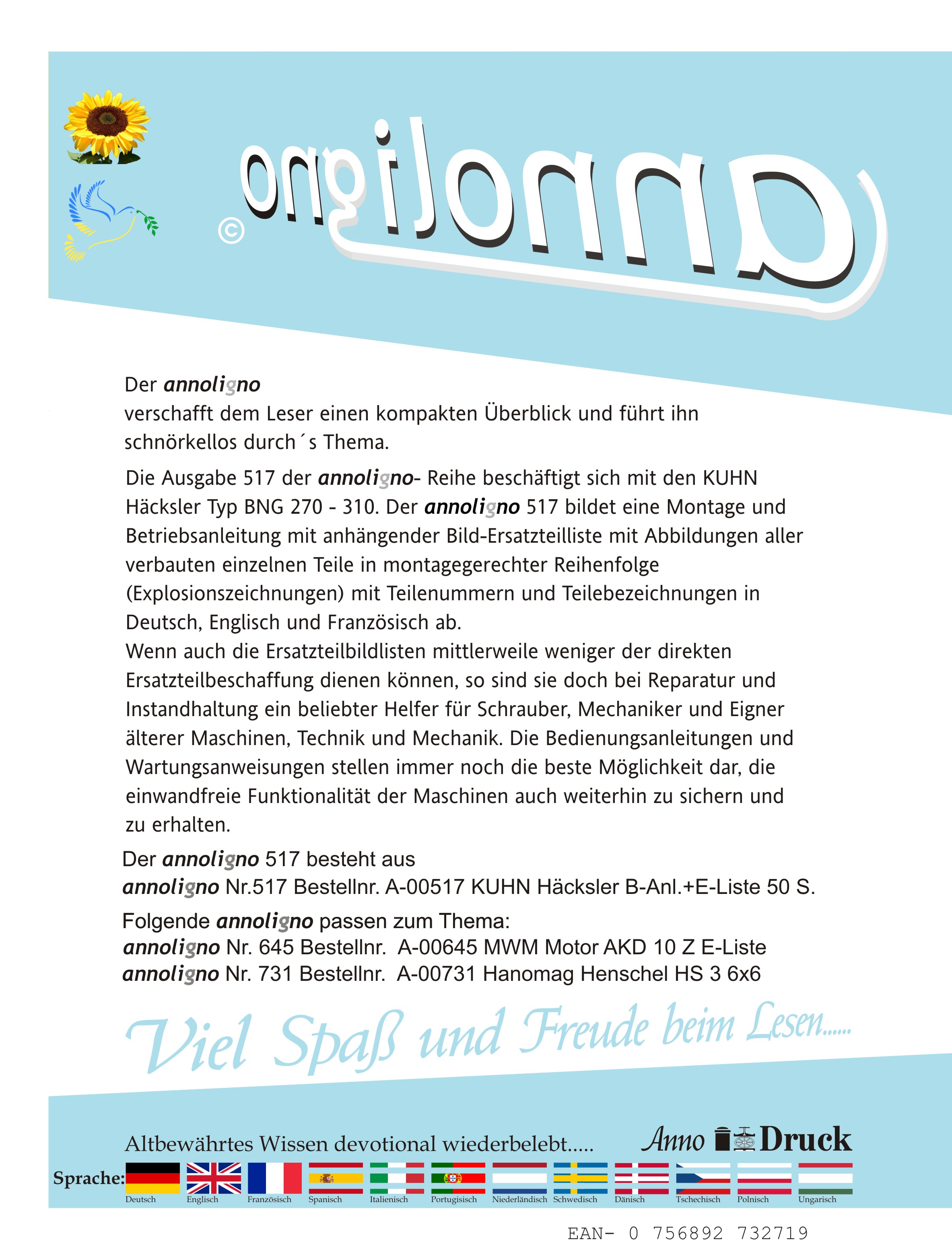 KUHN Häcksler Typen BNG 270 & 310 Bild- Bedienungsanleitungen & Bild- Ersatzteillisten & Explosionszeichnungen - annoligno 517