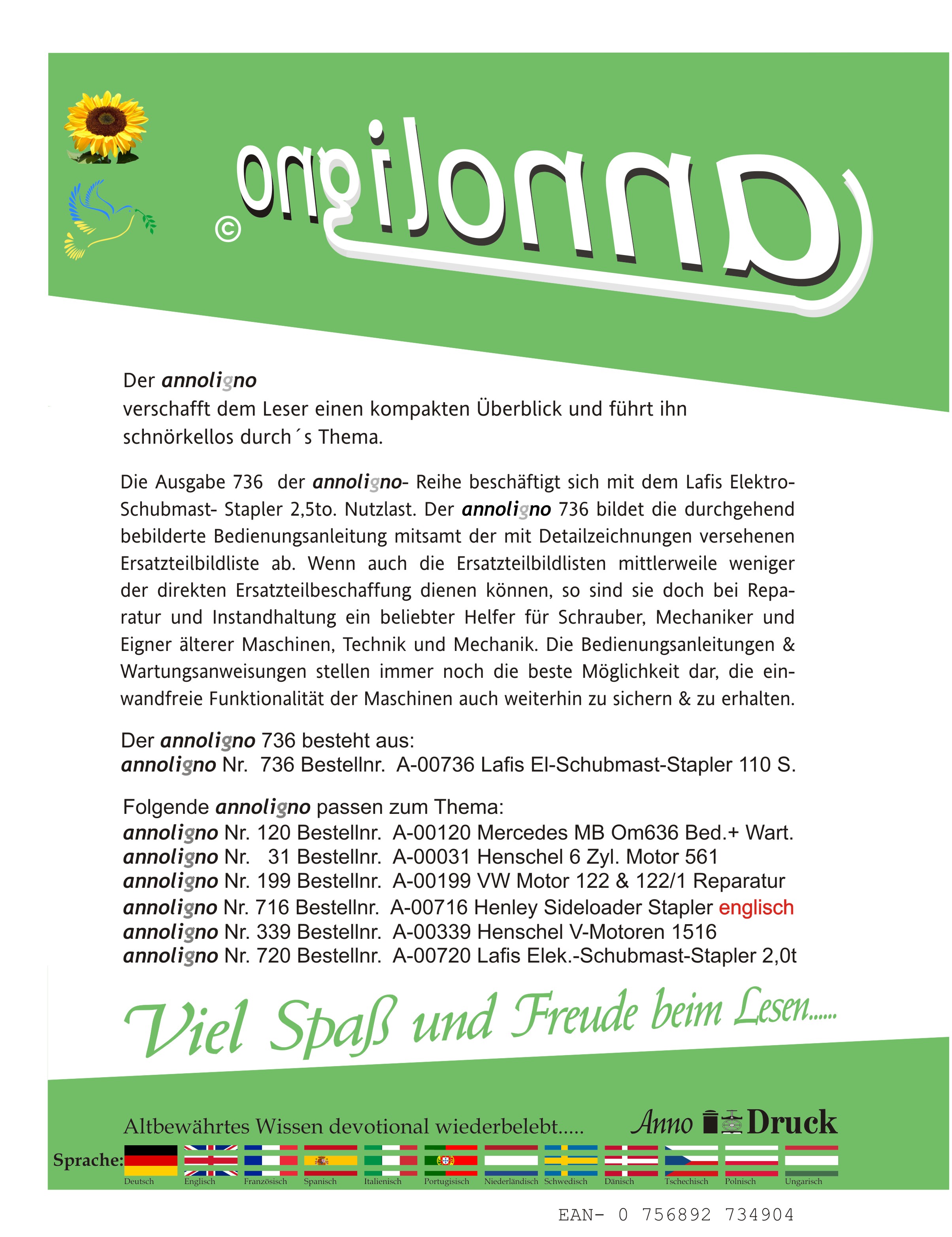 annoligno 736 bildet die Betriebsanleitung mit Wartungsanweisungen