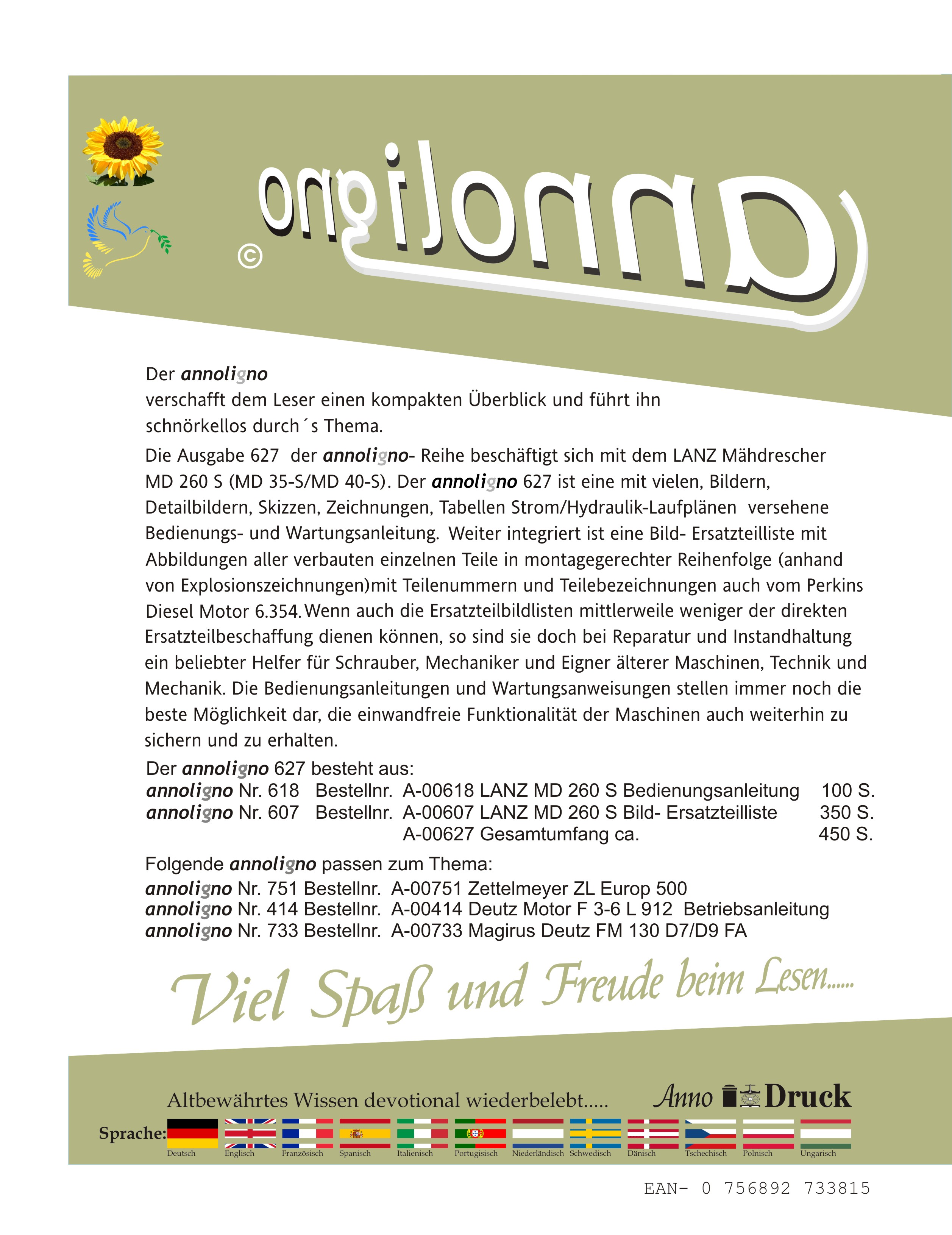 LANZ Mähdrescher Typ MD 260 – S (MD 35 S – MD 40 S) & Perkins Diesel Motor 6.354 Bild- Ersatzteilliste & Explosionszeichnungen - annoligno 627
