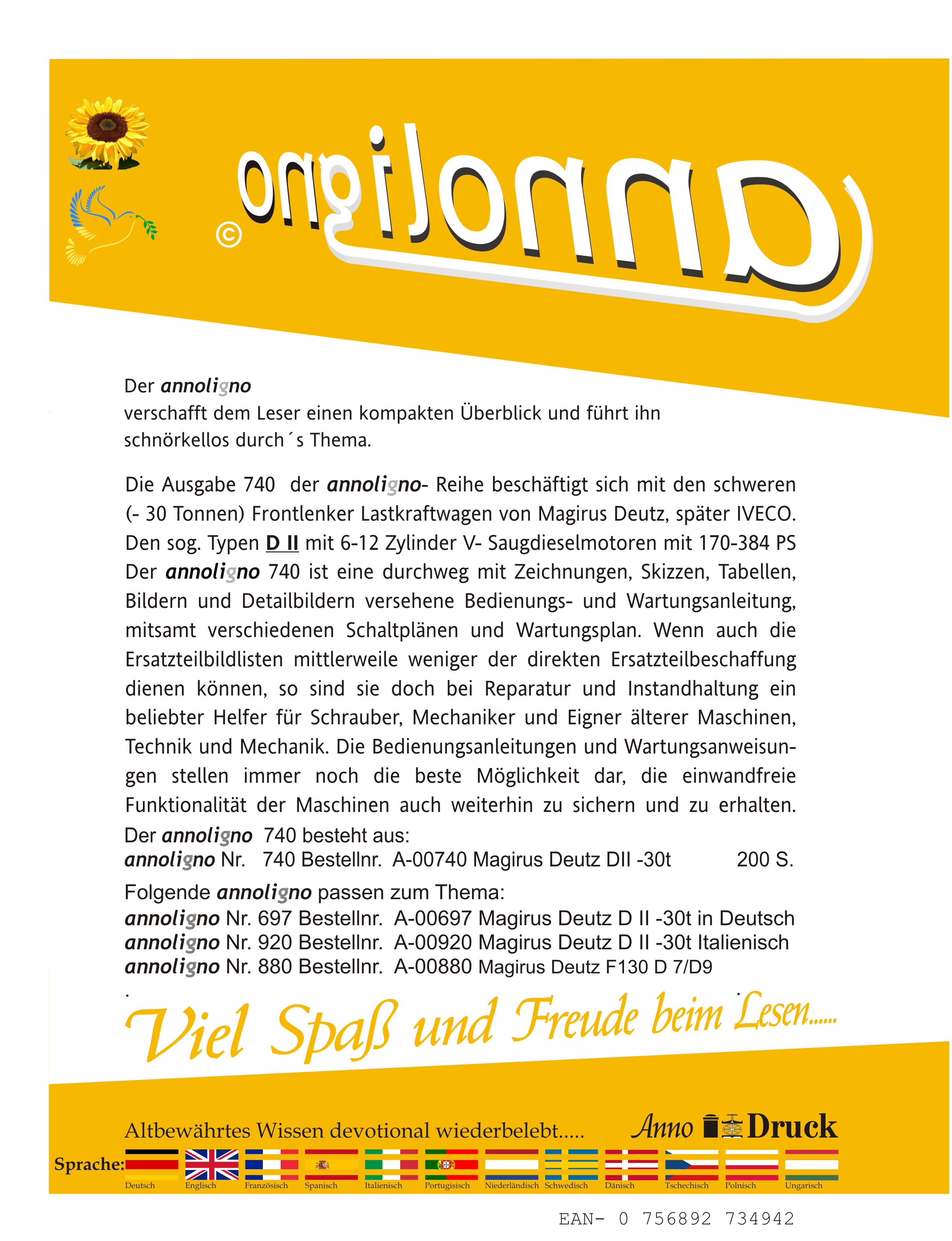 Magirus Deutz/IVECO Frontlenker LKW D II 30 to. & 6-12 Zylinder V- Diesel Motor Bild- Bedienungsanleitung - annoligno 740