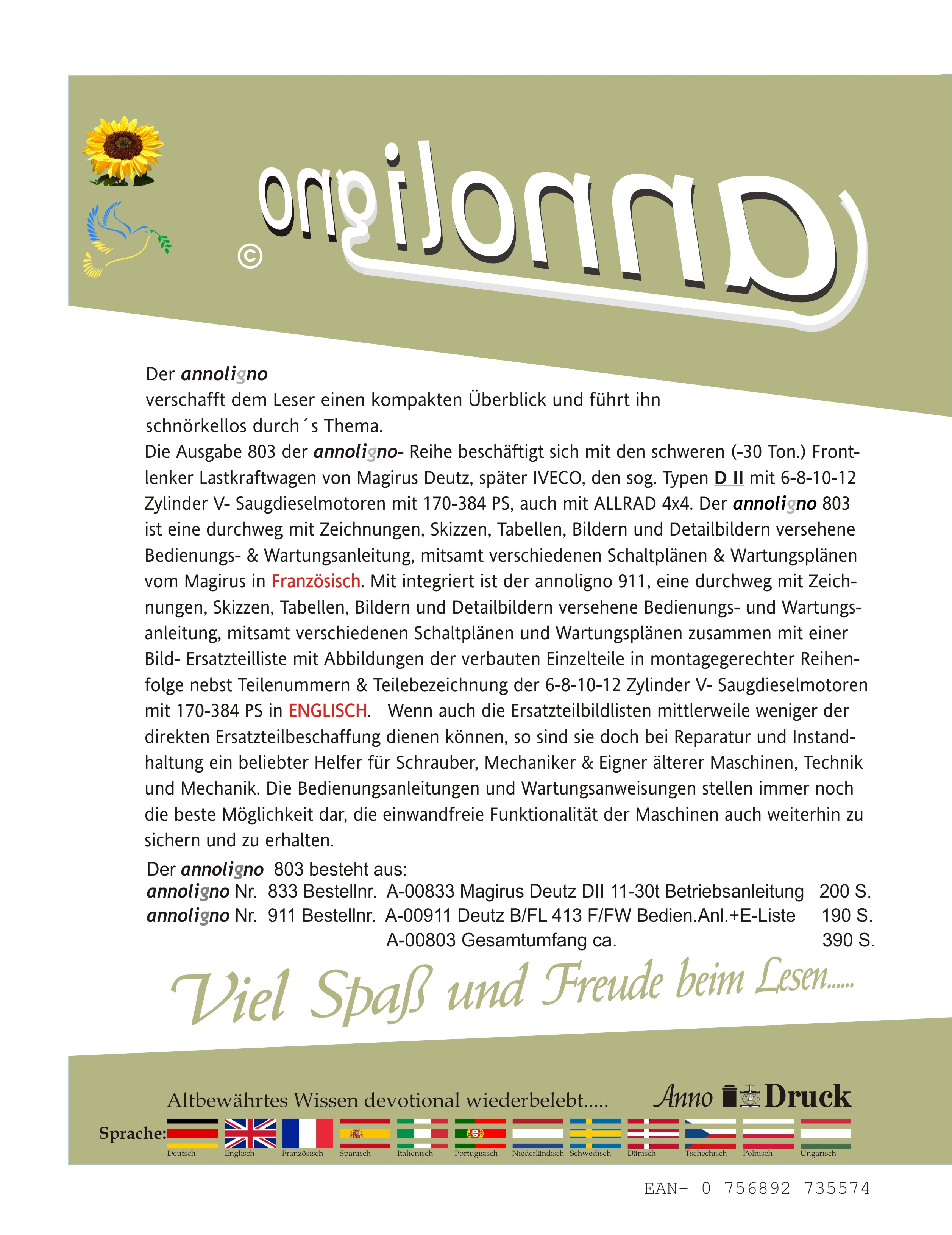Die Ausgabe 803 der annoligno- Reihe beschäftigt sich mit den schweren (-30 Ton.) Front-