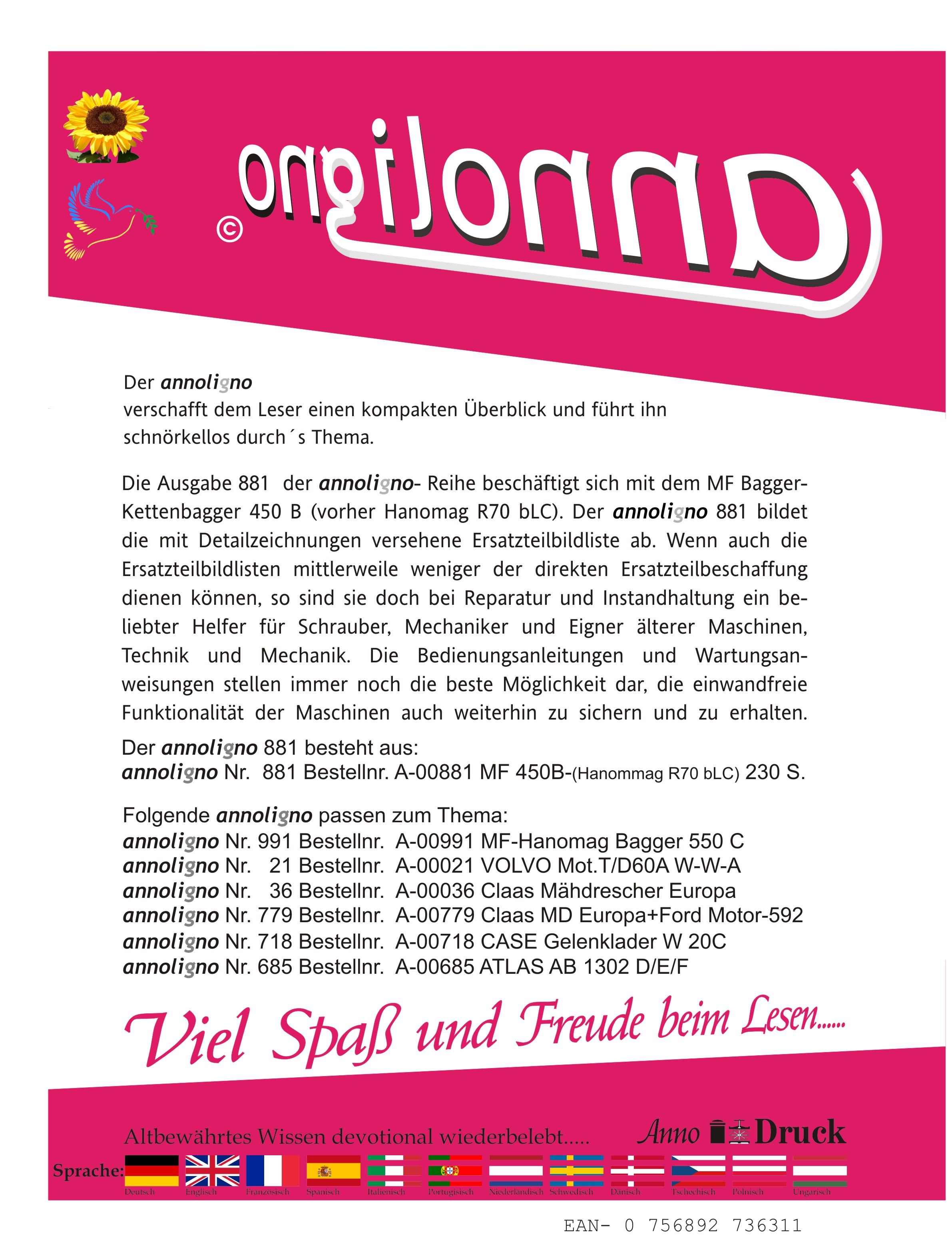 Massey Ferguson Bagger/Kettenbagger Typ MF 450 B (ehem. Hanomag R 70 bLC) Bild- Ersatzteilliste - annoligno 881