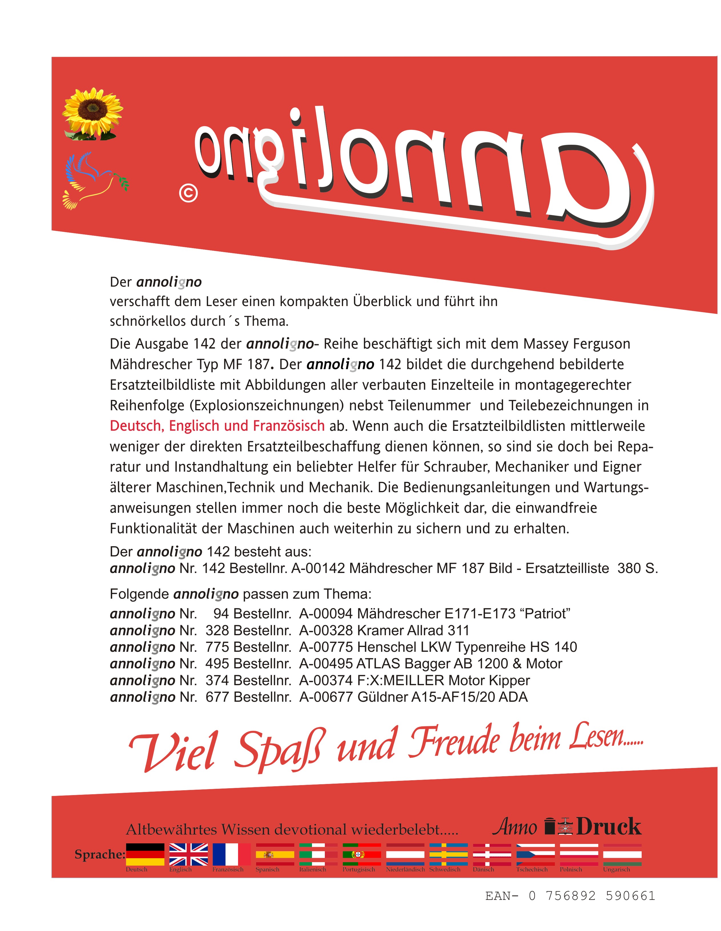 Massey Ferguson Mähdrescher Typ MF 187 Bild Ersatzteilliste mit Explosionszeichnungen in 3 Sprachen - annoligno 142