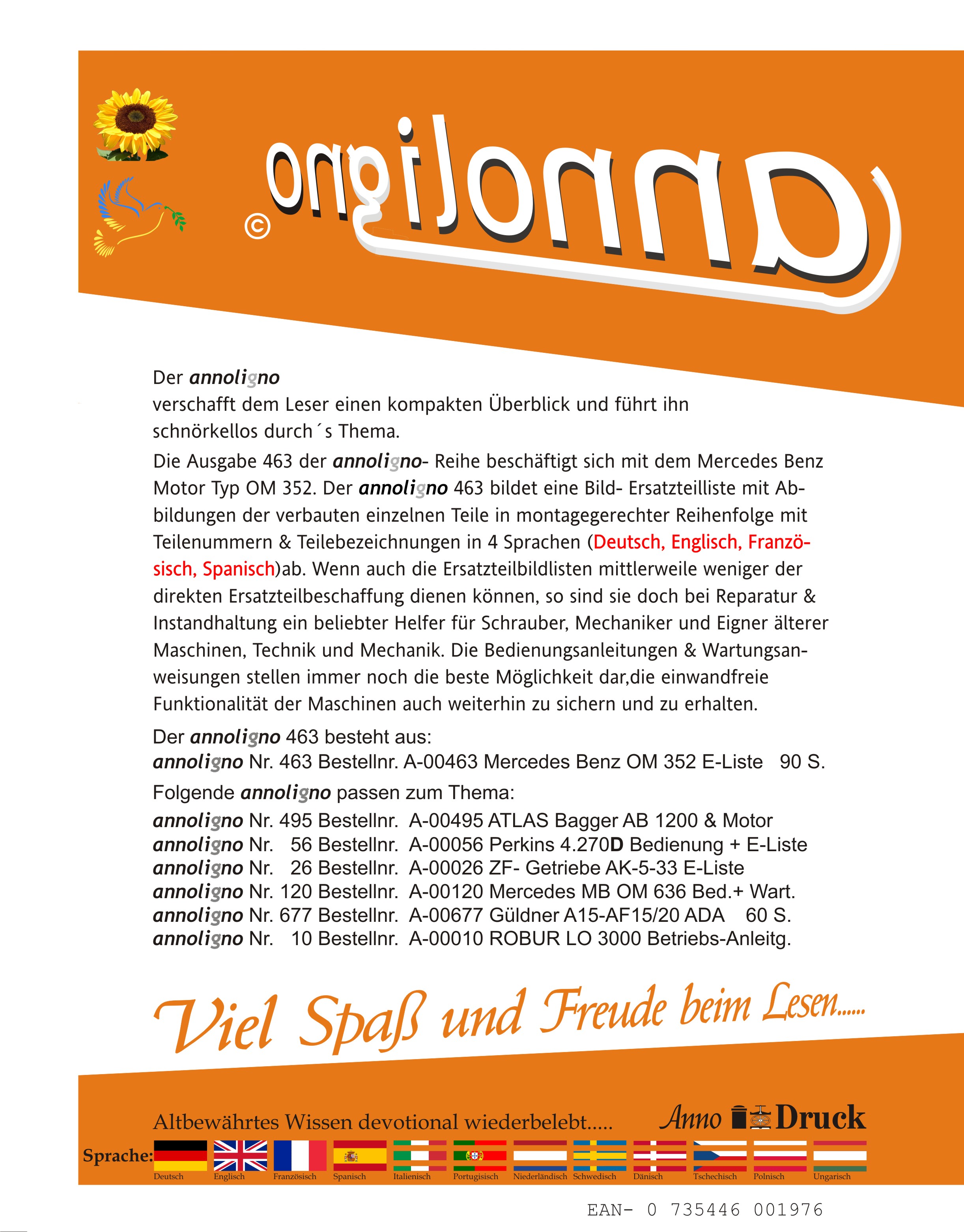 Mercedes Benz Motor Typ OM 352 Bild- Ersatzteilliste mit Explosionszeichnungen - annoligno 463