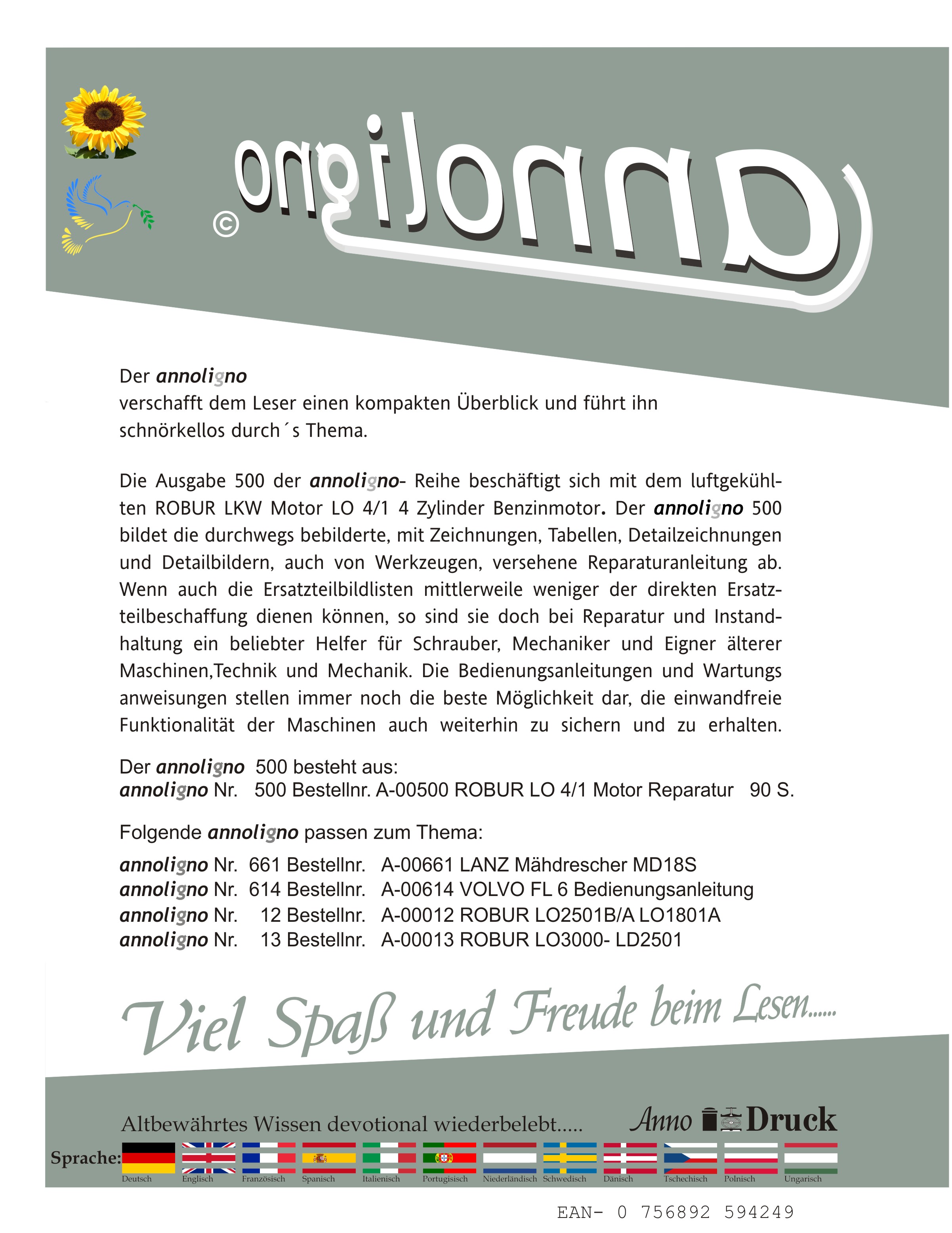 ROBUR 4 Zylinder LKW Benzin Motor Typ LO 4/1 Bild- Reparaturanleitung - annoligno 500