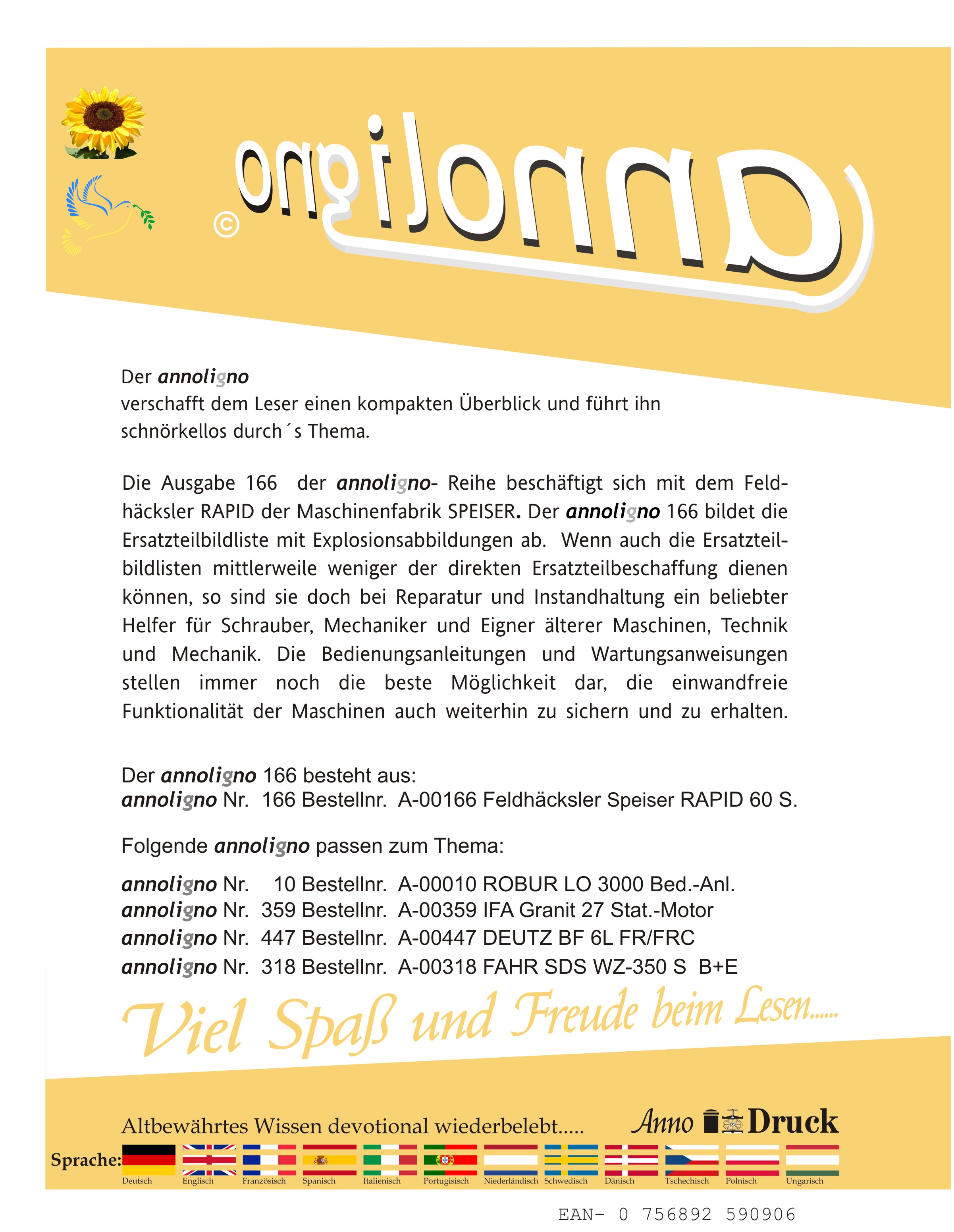 SPEISER Feldhäcksler Typ RAPID Bild- Ersatzteilliste & Explosionszeichnungen - annoligno 166 -