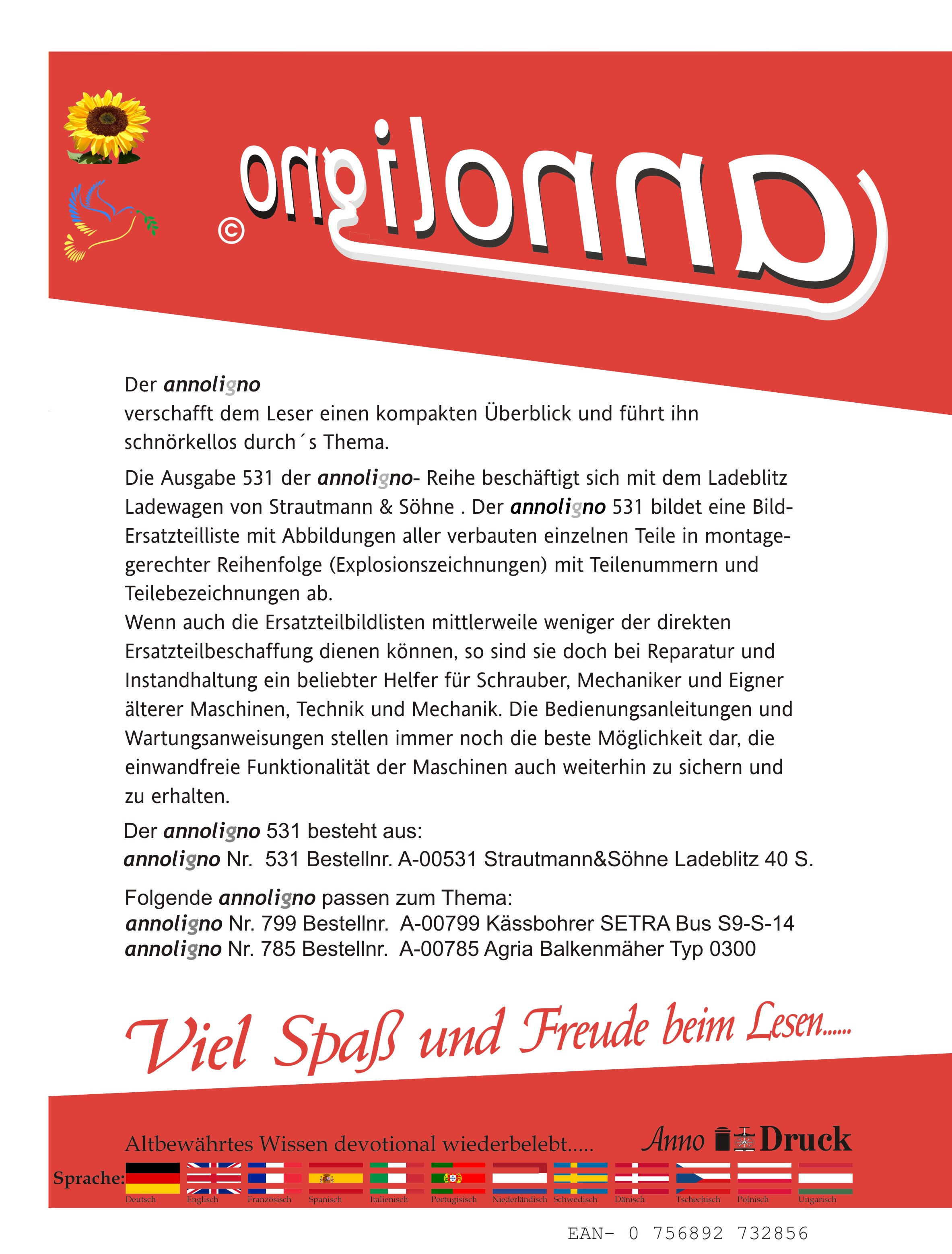 Strautmann & Söhne Ladewagen Typ Ladeblitz Bild- Ersatzteilliste & Explosionszeichnungen - annoligno 531