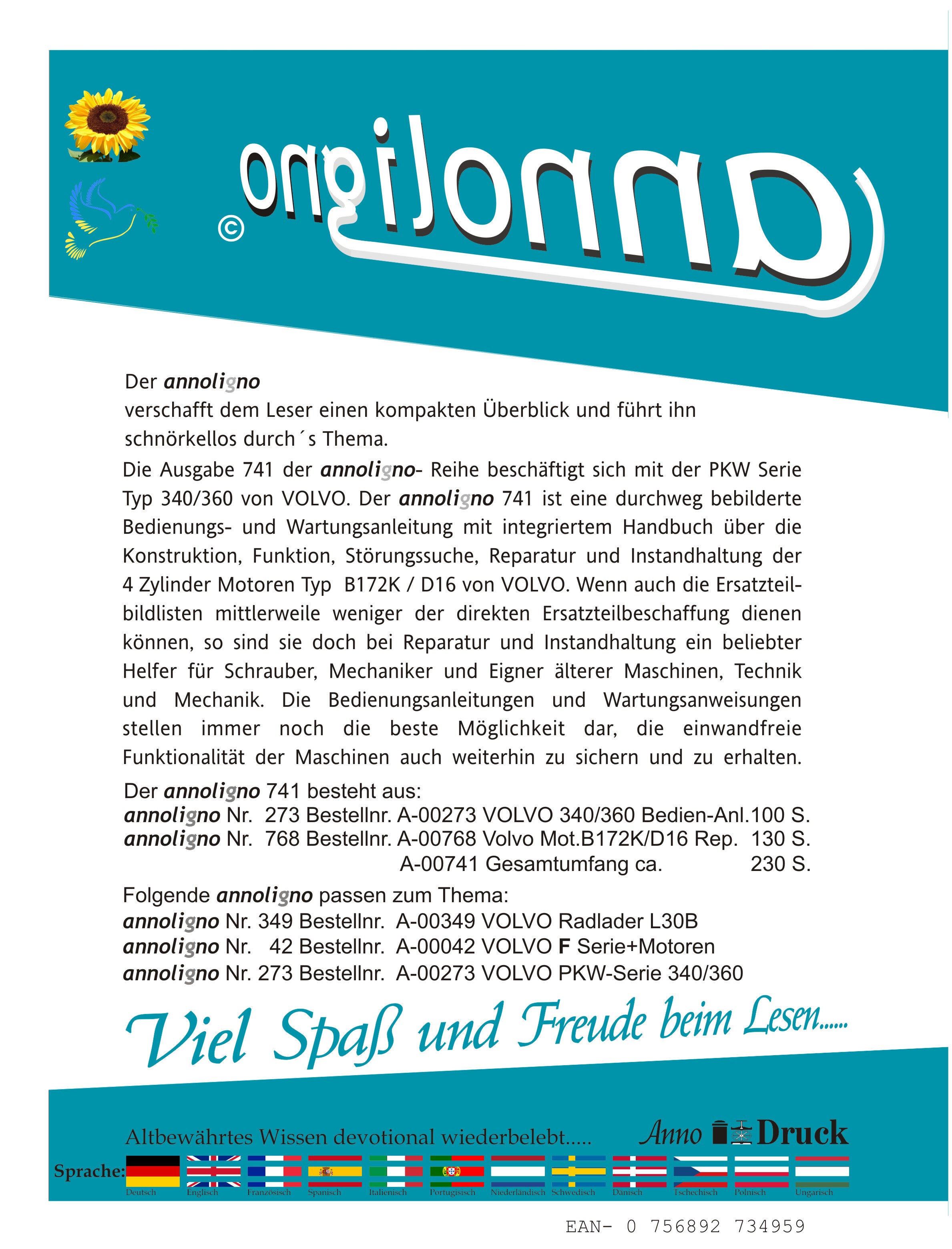 VOLVO PKW Serie Typ 340/360 & 4 Zylinder Motoren Typ B172K / D16 Bild –Beschreibung & Einstellanleitung & Wartungsanweisung & Reparaturanleitung - annoligno 741