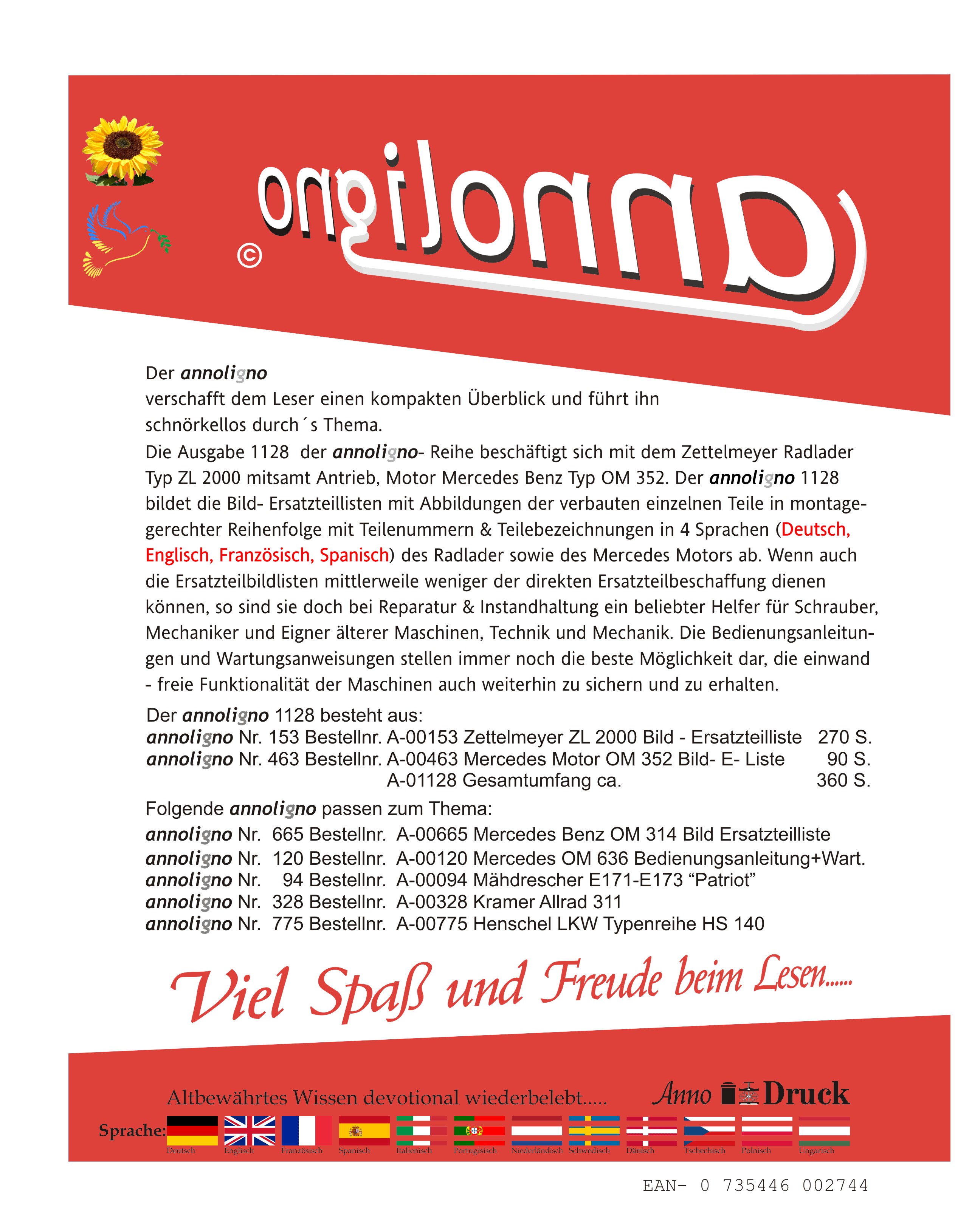 Zettelmeyer Radlader Typ ZL 2000 & Mercedes Benz Motor OM 352 Bild- Ersatzteilliste mit Explosionszeichnungen - annoligno 1128